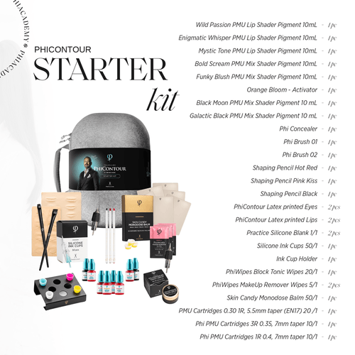Das Starter-Kit ist im Preis der Permanent Make-up Schulung in München enthalten und bietet dir alles, was du für deine ersten Behandlungen benötigst.Alle PhiContour-Produkte sind original, dermatologisch getestet und perfekt auf die Lippen- und Eyeliner-Technik abgestimmt.Damit kannst du direkt nach der Schulung professionell mit deinen ersten PMU-Kundinnen in München starten.